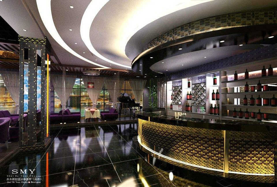 首先要視覺顯著,即客人在剛進入之時,便能看到吧臺的位置,感覺到吧臺的存在。因為吧臺應是整個酒吧的中心,酒吧的總標志,客人應盡快地知道他們所享受的飲品及服務是從哪兒發出的,所以,一般來說,吧臺應放在顯著的位置。