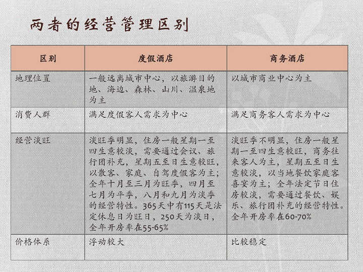 目前,在市場上的酒店可謂是琳瑯滿目、層出不窮,各種商務酒店、度假酒店、精品酒店、主題酒店分得出酒店類型的和分不出酒店類型的比比皆是。那么,對于商務酒店和度假酒店兩者之間您又了解多少呢?