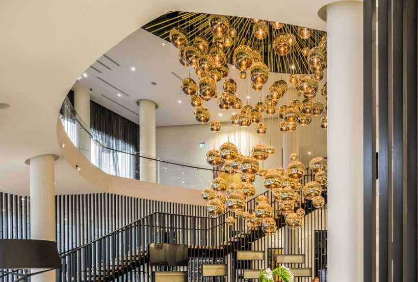 發布人:水木源創設計 發布時間:2020.02.10隨著科學技術的發展,市場上出現了大量的全新的燈具設計和造型,這些全新燈具的大量出現給酒店空間的燈光設計帶來了技術性的革命,使酒店內各個空間的燈光選擇性更強、效果更好。例如: