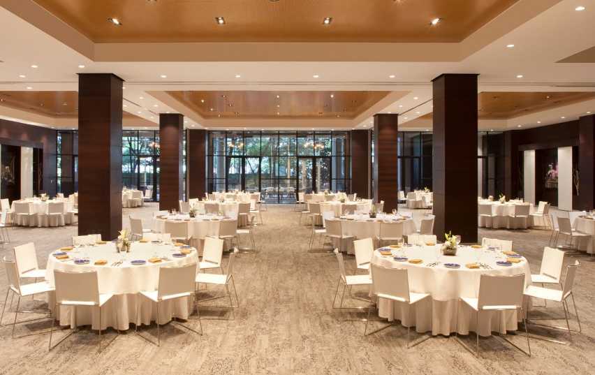 在對宴會廳進行設計時,應該注重氣氛的隆重性。在這個過程中,可以將圓形多層疊級的天花和大型水晶吊燈進行有效結合,進而彰顯宴會廳富麗堂皇的氣質(zhì)。同時,為了達到劇場效果,也可以對舞臺一側進行一些特殊設計,比如可以通過歐式線條進行收邊等,進而滿足集體活動的需要。另外,也需要對一些比較空的墻面進行些裝飾,比如放置一些屏風、通過射燈進行照射等,進而活躍大廳氣氛,增強大廳的動感。