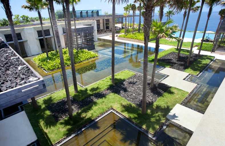 海濱度假勝地:海濱度假酒店比較受其功能和地域的限制。濱海假日酒店充分利用了陽光、海灘、海水等自然資源,深受廣大游客的青睞。顧客從海濱度假酒店前往海灘通常有一段距離。與海灘景觀設計不同,海濱酒店設計更注重隱私和舒適性。必須充分利用周圍起伏的地形,以減少室內通過的視覺沖擊力和視野。這要求酒店景觀設計應充分考慮景觀的滲透性和游客活動的隱私性,酒店中的會議場所需要創造一個私人和安靜的環境。同時,植物的多樣性可以創造出豐富的景觀水平,利用照明效果也可以創造一個美麗的夜景環境。利用沿海植物營造海濱度假的氛圍,充分考慮植物的多樣性;利用高大的植物創造適當的遮蔭效果。