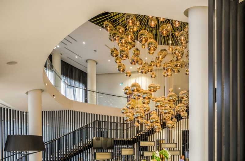 發布人:水木源創設計 發布時間:2020.06.06在精品酒店設計中,任何酒店室內都離不開燈光設計,無論是從市場需求和顧客需求來看,精品酒店燈光設計都是必不可少的?,F代酒店的燈光設計,應當更多地從環保的角度進行考慮,而市場需求上的環保,可以解釋為器材上的環保,就是如何平衡造成污染的各個因素;而顧客需求上的環保,則是燈光照度、明暗的環保,避免光線直射造成的光污染和炫目。