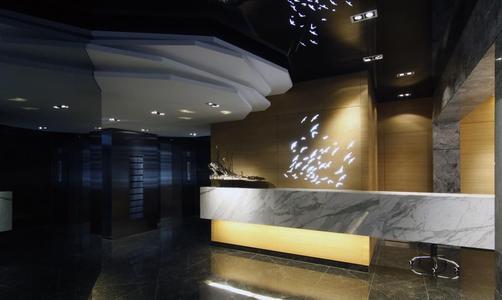 前臺,位于酒店大堂的顯要位置,客人進入酒店就能一眼看到,而且通過這里能看到電梯廳和行李存放處的方位;同時讓前臺人員能看到從大門走進的客人,并且能兼顧到大堂區域的活動,以及自電梯廳進出的客人。