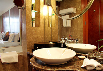 1、樓板:隔音效果與其質量成正比,建議采用厚度為120mm的混凝土樓板(表面為水泥砂漿墊層);客房過廊處:在石材下加上10mm厚的軟墊物做避震處理,以減少撞擊噪聲;