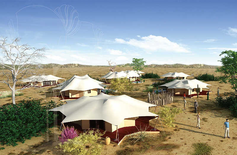 大多是的帳篷酒店都會采用膜結構造型,膜結構則以造型學、色彩學為依托,可結合自然條件及民族風情,根據建筑師的創意建造出傳統建筑難以實現的曲線及造型。膜結構——建筑師的浪漫設想,享受大自然般柔順豐盈之美。